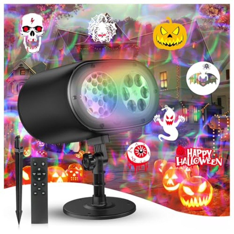 2-in-1 Outdoor Halloween and Holiday Projector Lights with Remote and HD Effects