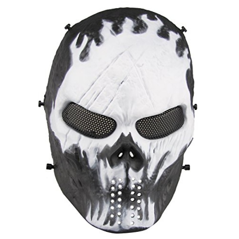 Designed with ventilation holes at the nose and mouth, it invites fresh air to flow freely, helping you breathe easy as you weave through ghostly gatherings or tactical games. The metal mesh eye guards add an extra layer of protection, keeping your gaze sharp through the shadows while maintaining clear visibility. Adjustable elastic straps secure the mask snugly to your head, so it stays in place whether you’re prowling a haunted house or engaging in lively Nerf gun battles.