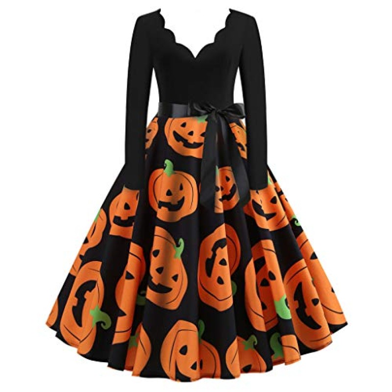 - Long sleeve vintage Halloween dress for a timeless and elegant look