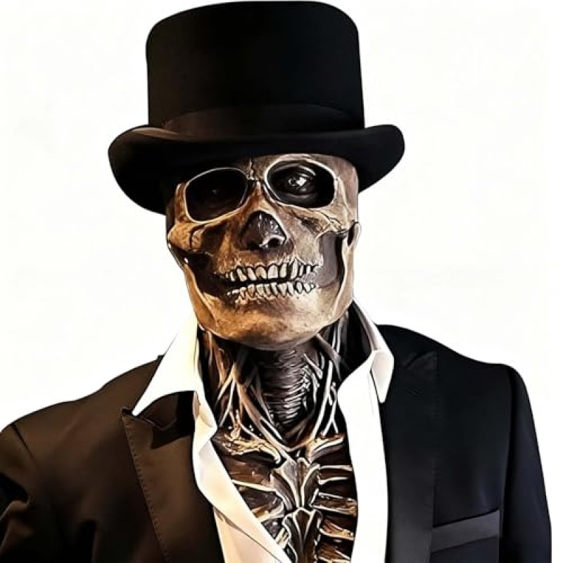 The included hat adds a daring touch, elevating your look to a whole new level of Halloween spectacle. Whether you’re conjuring up ghosts at a costume party or casting a shadow in a carnival or New Year's Eve celebration, this skull mask transforms you into the embodiment of Halloween mischief. Embrace the spirit of the season, and let this mask reveal your dark and playful side.