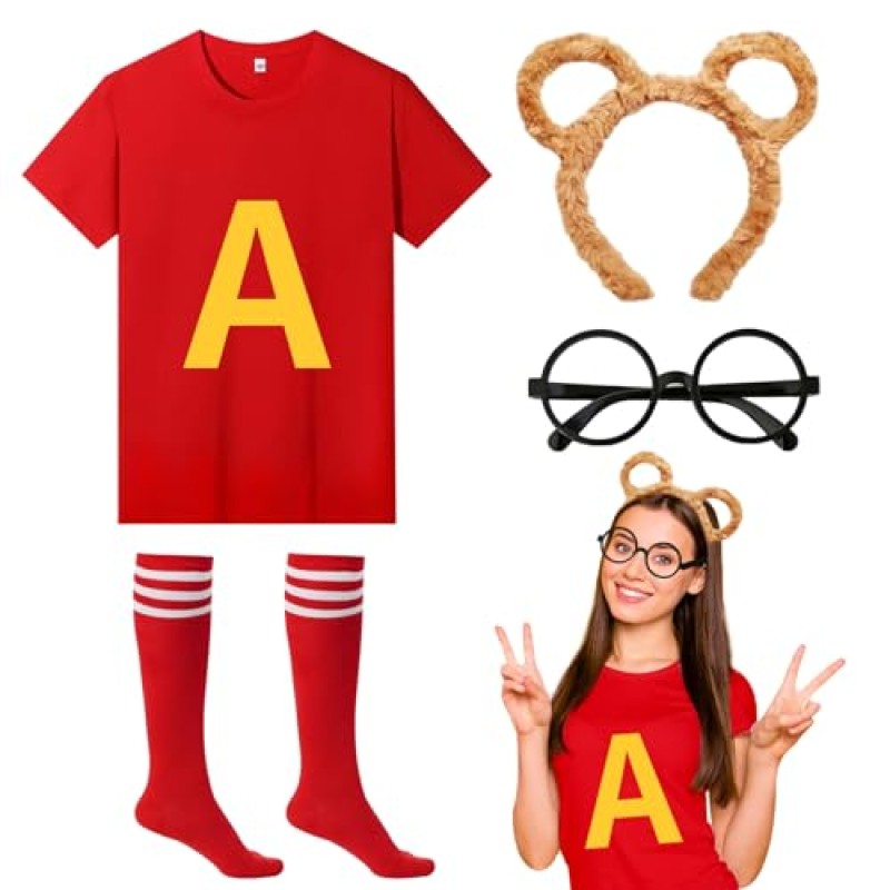 Chipmunks Costume Set with T-Shirt, Headband, Glasses, and Socks
