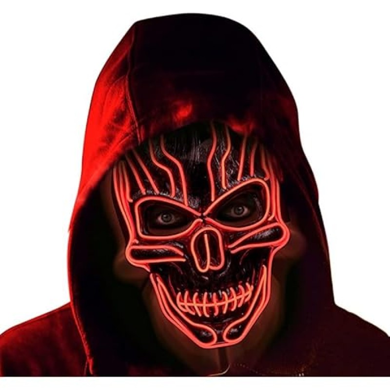 Transform into a spectral vision with the eBoutik LED Skeleton Mask, a luminous delight for your Halloween festivities. Crafted with eerie EL wire outlining chilling bone designs, this mask glows in your choice of sinister red or ghostly blue. Perfect for haunting the night, it flickers with three spine-tingling light modes — slow blink, fast blink, or steady glow — all powered by two AA batteries, setting the perfect eerie ambience for your ghoulish escapades.