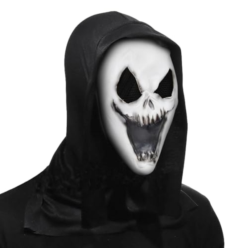 The mask's professionally sculpted 3D details come alive under the moon’s glow or dim party lights, with a matte finish and shadowed contours that deepen its terrifying charm. Whether you’re conjuring scares at haunted houses, prowling the neighbourhood for treats, or casting a spectral presence at conventions and costume bashes, this mask transforms you into a scream-worthy apparition. Store it safely in its protective bag to keep your horror haunt in tip-top shape for many Halloweens to come.