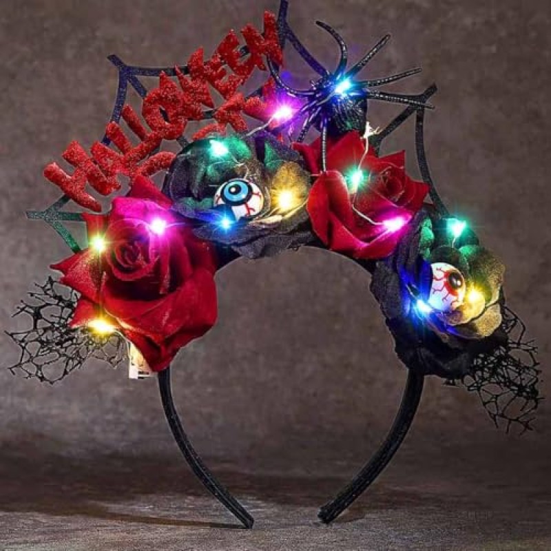 - Spooky LED Halloween headband with horror eyeballs and spider web design