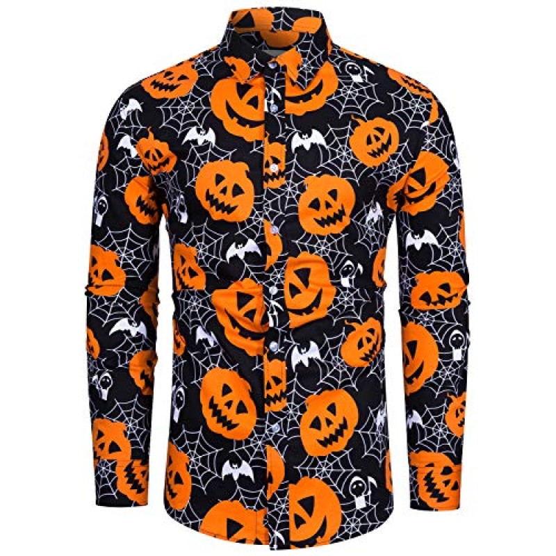 Fohemr Men's Halloween Pumpkin and Bat Print Shirt