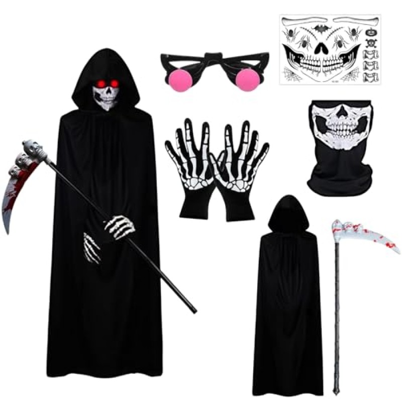 Grim Reaper Costume with Glowing Glasses and Accessories