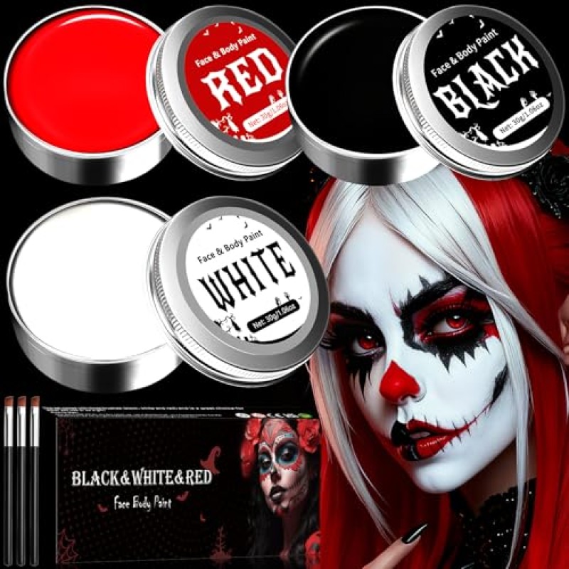 Halloween Face Paint Kit for SFX Makeup – Black, White & Red Trio