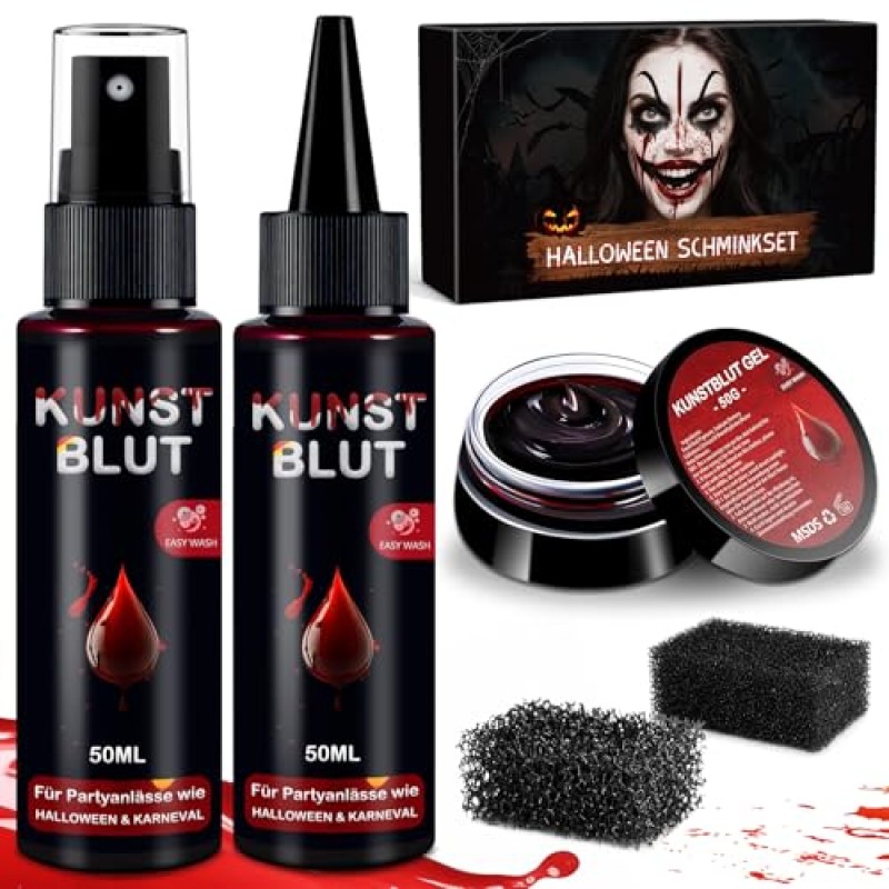 Halloween Fake Blood Makeup Kit with Sponges and Spray