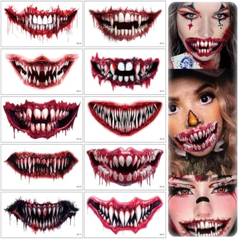 - Halloween mouth tattoo stickers with eerily realistic and bloody designs to spook your friends.