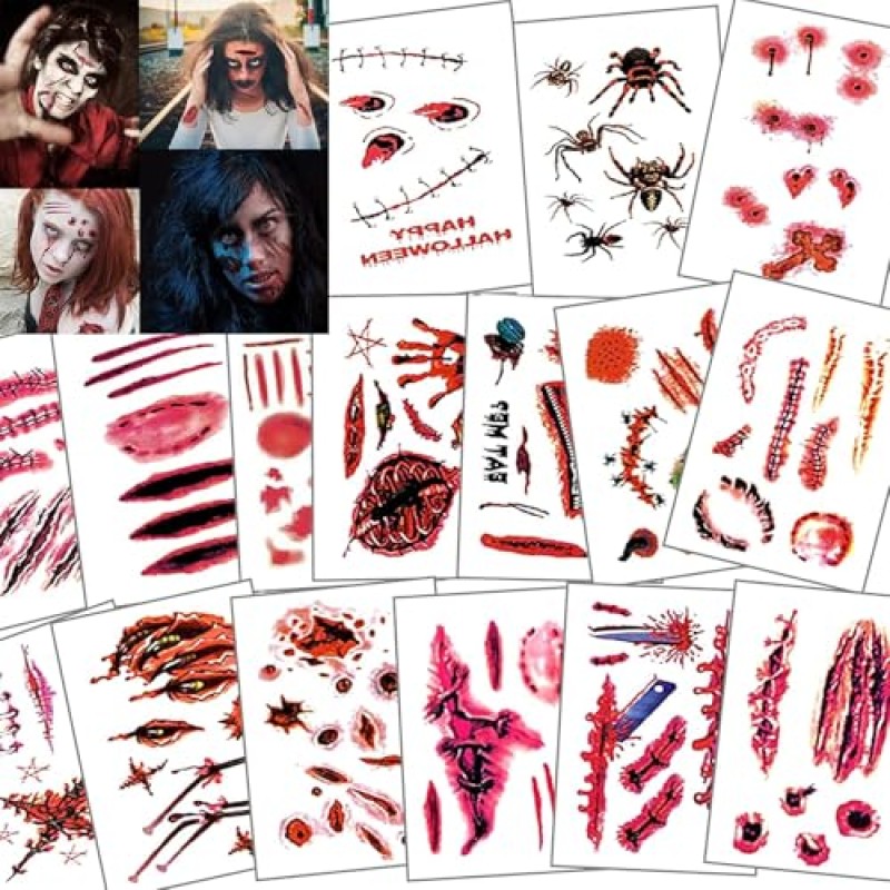 - Contains 30 sheets of temporary tattoos featuring wounds, cuts, and vampire bite marks to create a realistic Halloween effect.