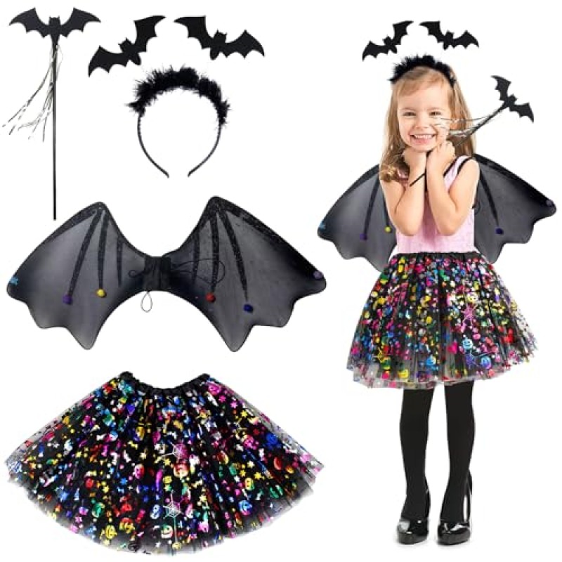 - Includes tiara, wand, wings, and tutu for a complete bat-inspired look