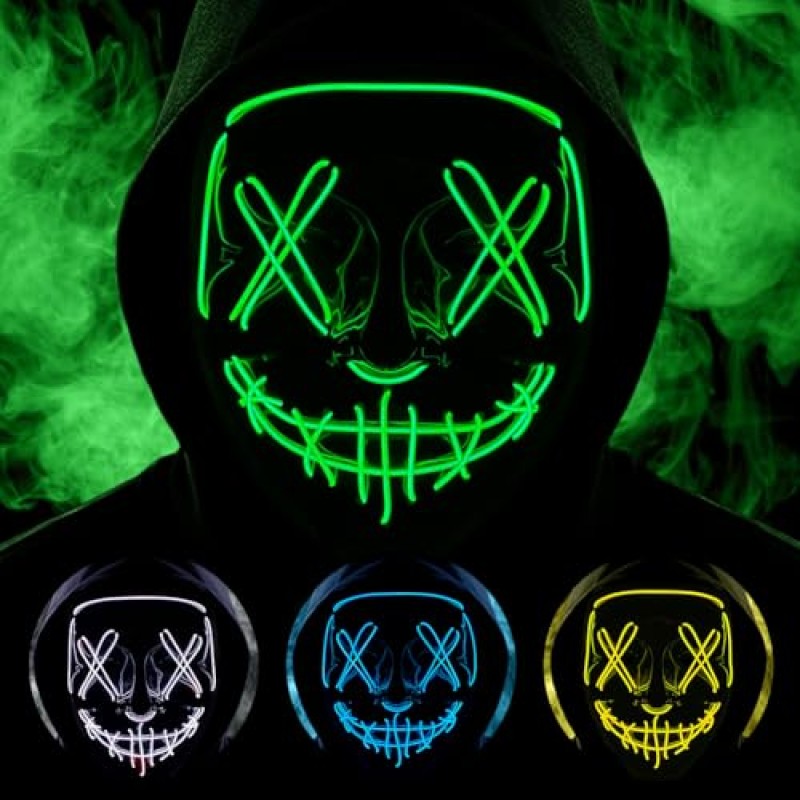LED Neon Mask with 3 Light Modes for Halloween and Festivals