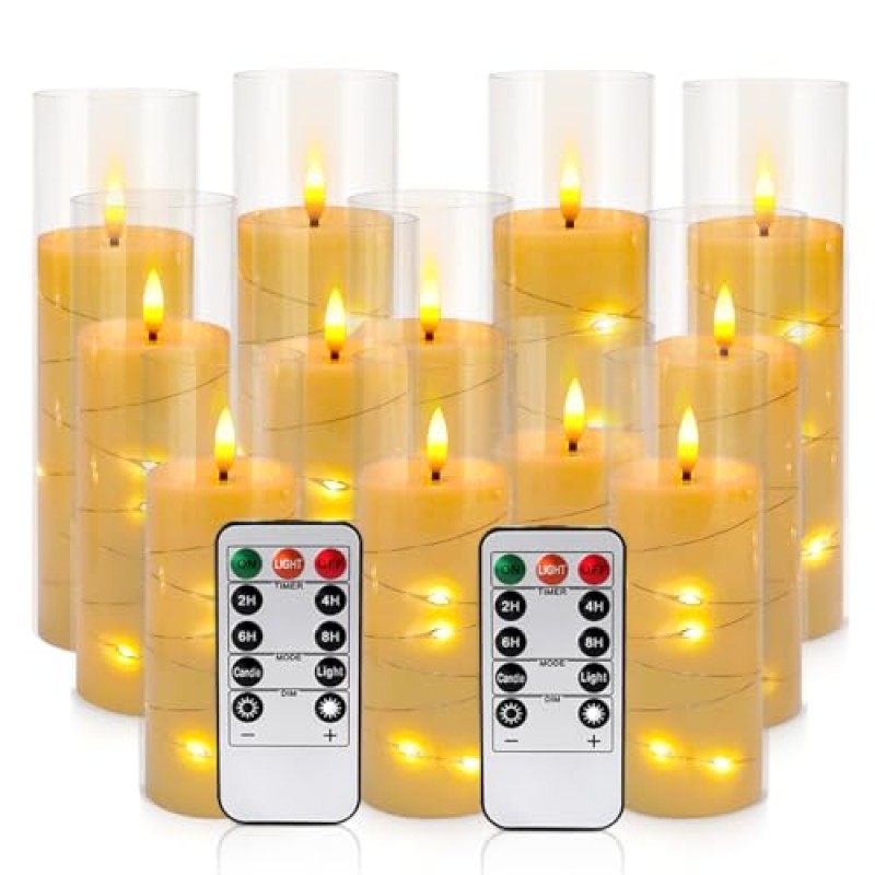 LIVEN Flickering Flameless LED Pillar Candles with Remote – Pack of 12
