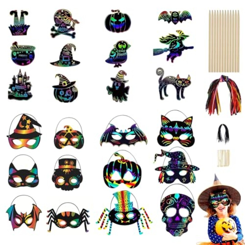 LKNBIF Halloween Scratch Art Masks 36-Piece Set