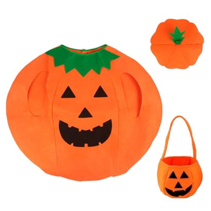 - Complete costume set includes pumpkin suit, matching hat, and carry bag for a head-to-toe Halloween look.