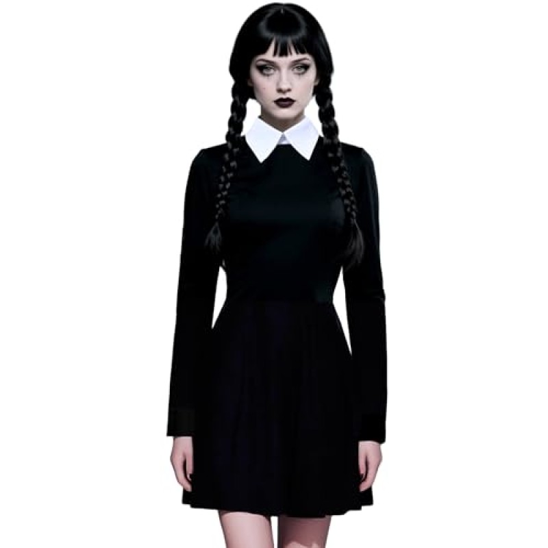 Step into the eerie world of Halloween with our LUYANA Women's Peter Pan Collar Skater Dress. Embrace the Halloween spirit with this cosplay dress, featuring a sophisticated white Peter Pan collar and an easily accessible back zipper, perfect for capturing that classic spooky aesthetic. Whether you're attending a Halloween party, participating in a cosplay event, or simply expressing your unique style, this dress adds a touch of magic to your haunted evening.