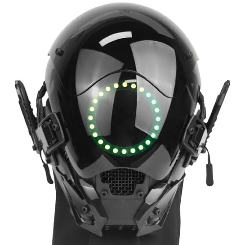 Step into a neon-lit cyberpunk dream with this Marikito Punk LED Light-Up Mask, designed to ignite your Halloween night with futuristic flair. Whether you’re roaming the shadowy streets of a dystopian world or sparking life into a high-tech rave, this mask brings a dazzling multi-coloured LED display that dances to your surroundings’ soundscape, creating a captivating light show that commands attention.