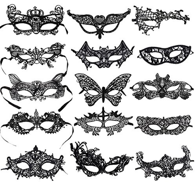 Mesee 15-Piece Women's Black Lace Masquerade Masks for Parties