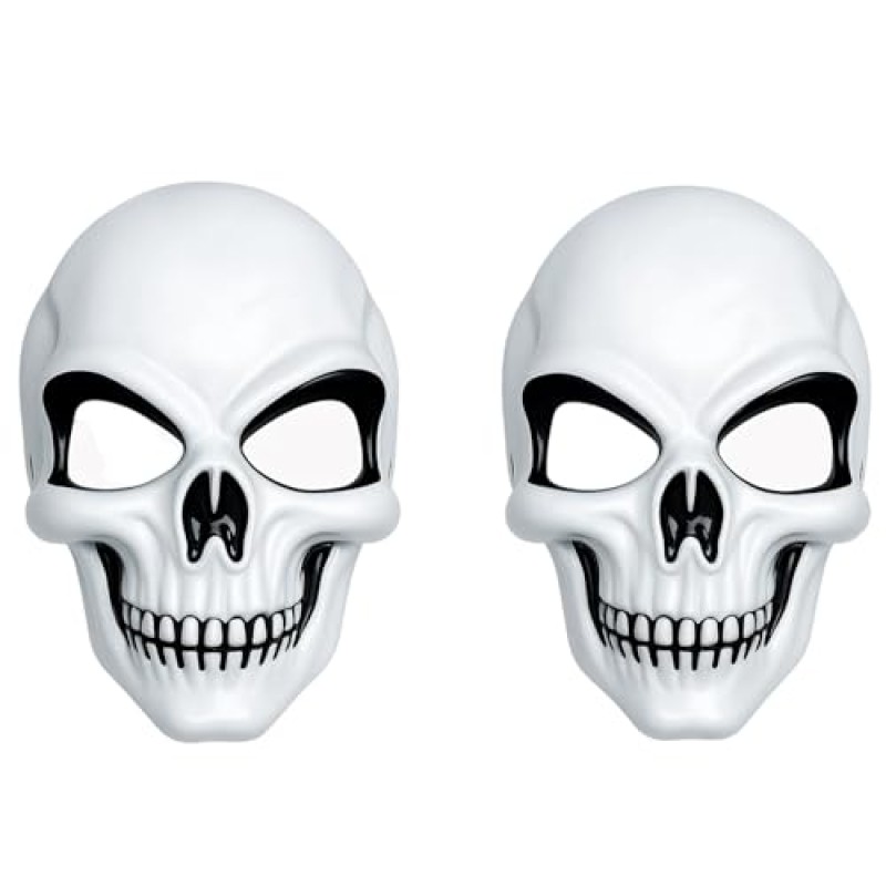 - Set includes two high-quality skull and ghost face masks – double the fright for your Halloween festivities.