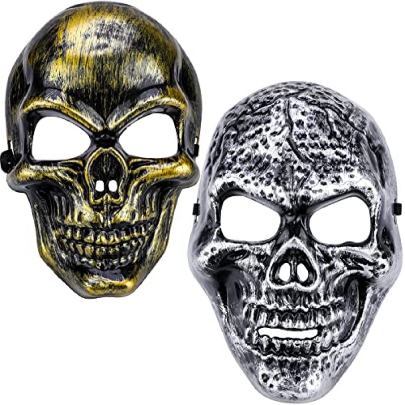 - Includes 2 skull design masks in striking silver and gold – double the spooky fun.
