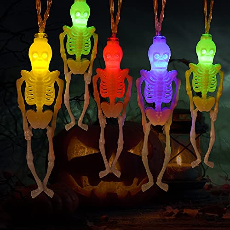 - Length: 6.5 feet string adorned with 10 skeleton skull lights to wrap your haunt with skeletal charm.