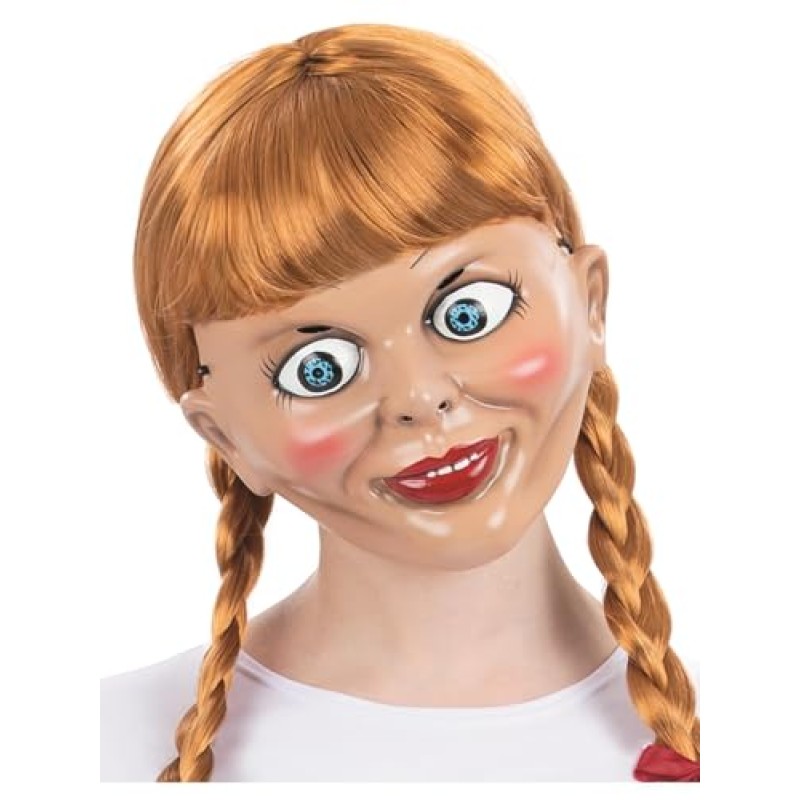 Its striking, detailed design holds its ghostly shape, making it a restless spirit that returns year after haunted year. Whether you wear it alone to send shivers down the spine or pair it with the matching Annabelle dress costume for a fully ghostly transformation, this mask ensures you leave a lasting, haunting impression. A splendid accessory to conjure up countless creepy costume ideas or to weave into your eerie décor.