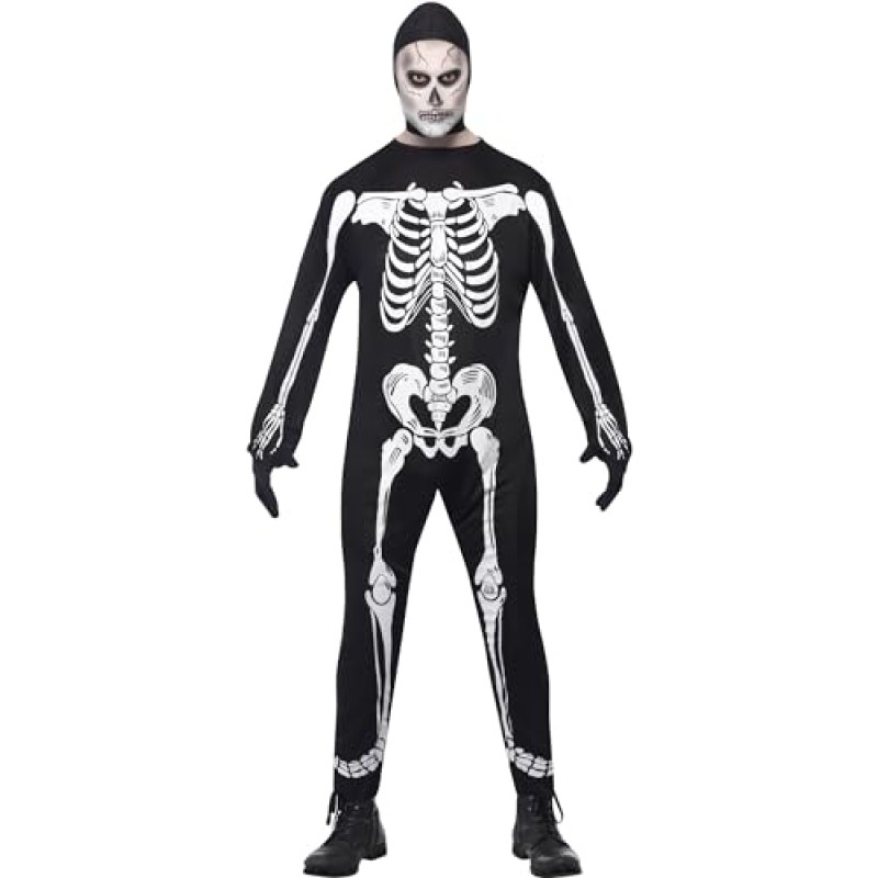 Smiffys Skeleton Costume with Jumpsuit, Hood, and Gloves