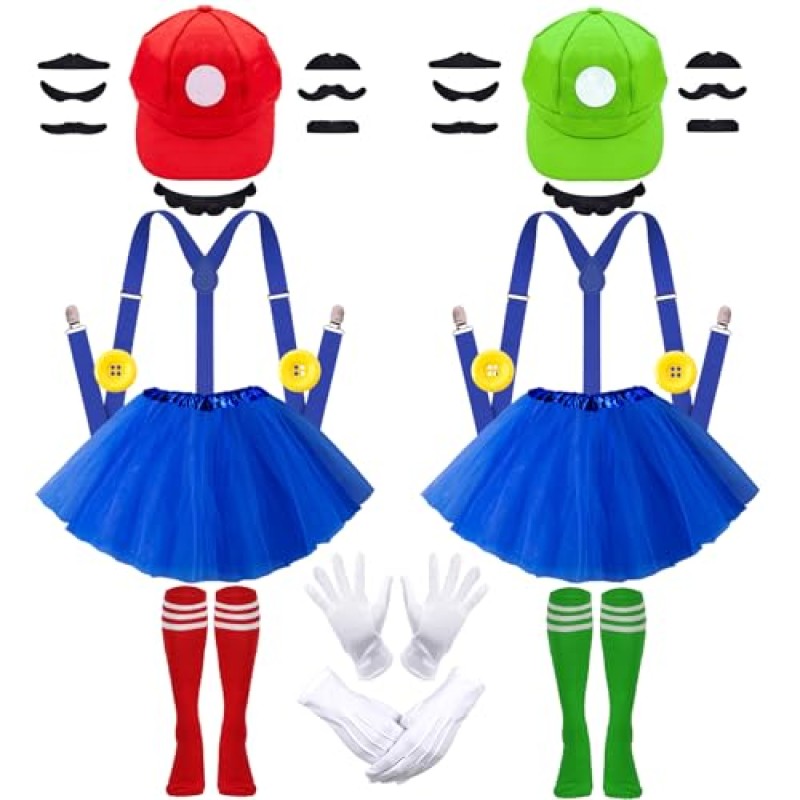 Crafted with durable materials to endure a night of spirited tricks and treats or lively parties, the set includes adjustable features that cater to adults, teens, and kids alike, ensuring a snug fit throughout your adventures. The blue suspenders, white gloves, and themed socks further cast the spell of authenticity, making it clear you mean business in cosplay and costume contests.
