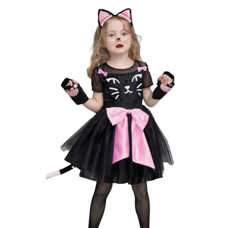 Trsenvrml Kids' Black Cat Halloween Costume Dress Set