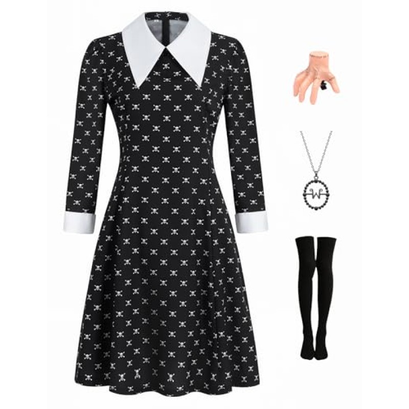 - Includes: Wednesday Addams Family Gothic Costume and skull hairpin