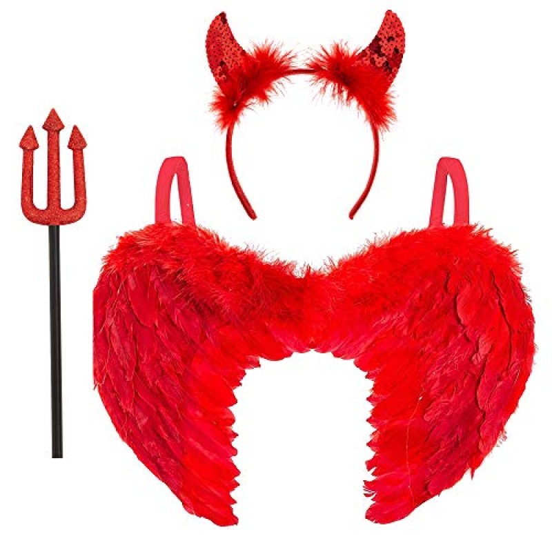 - Adult Devil Accessories: Red angel wings, devil headband, and pitchfork to enhance your devil outfit.