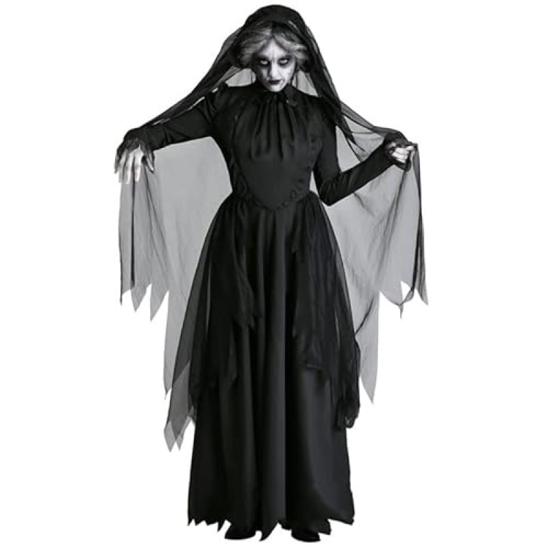 - 3-piece set includes black long dress, veil, and classic witch hat – perfect for full witchy transformation.