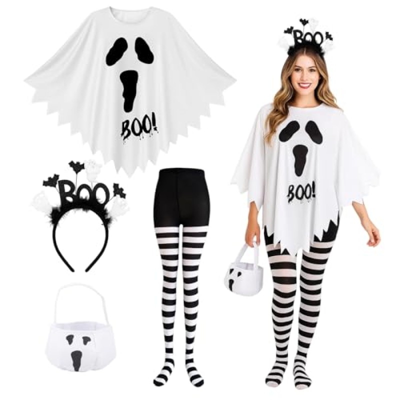 YREYBN Women's Halloween Costume Set with Cape, Headband, Stockings and Tote Bag
