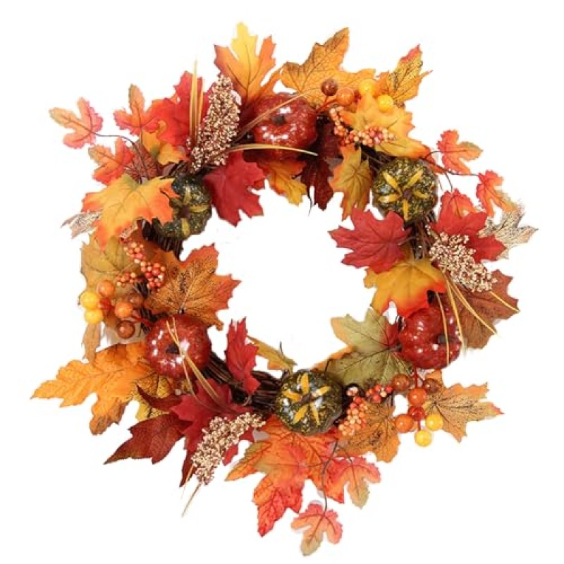 ZYOOO 40cm Artificial Autumn Wreath with Pumpkin, Berries, and Maple Leaves